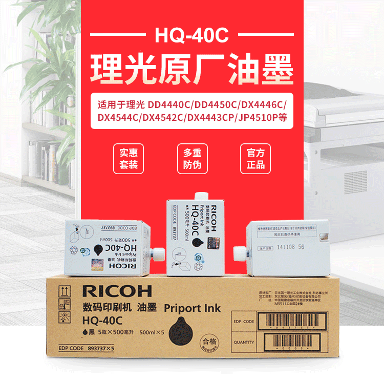 理光RicohHQ40C黑色油墨5支盒适用DD4440C4440PC4450C4450PC4450P