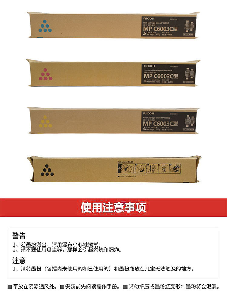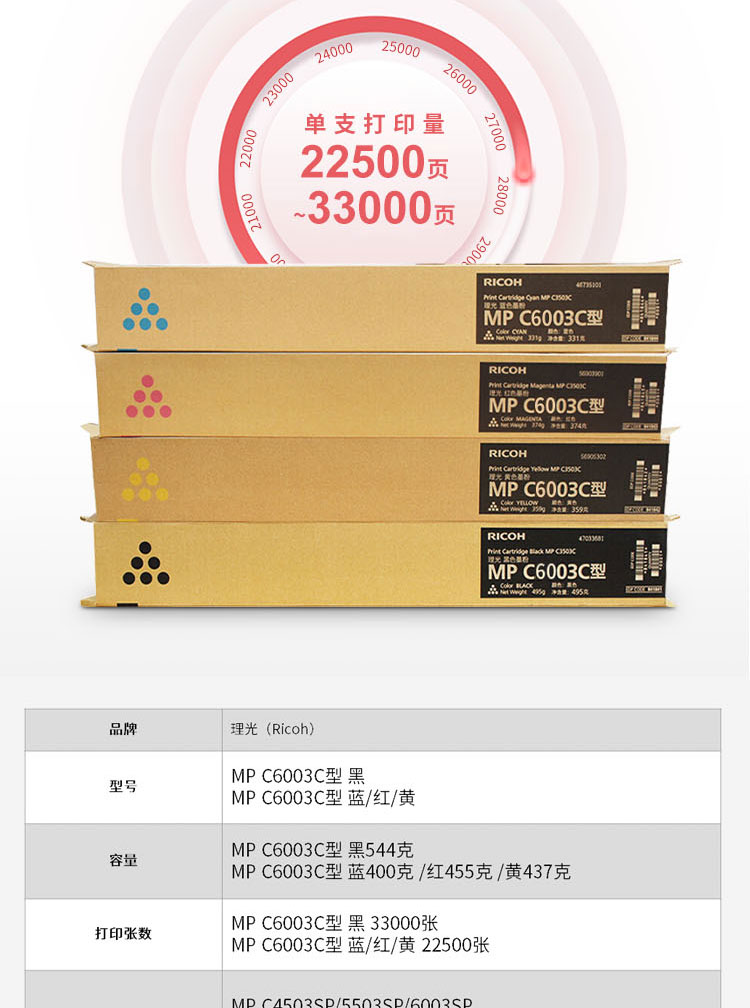 理光RicohMPC6003C黑色碳粉盒1支装适用MPC4503SP5503SP6003SP4504SP6004SP