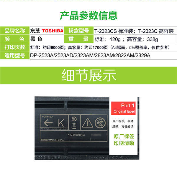 东芝TOSHIBAT2323CCS粉盒原装黑色碳粉适用25232323AM2822AMT2323C高容粉1支338g17000页原装黑色墨粉盒
