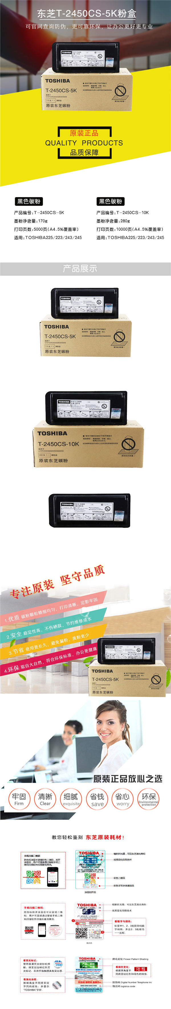 东芝TOSHIBAT2450CS粉盒原装黑色墨粉盒碳粉耗材适用223225243245T2450CS5K170克5000页
