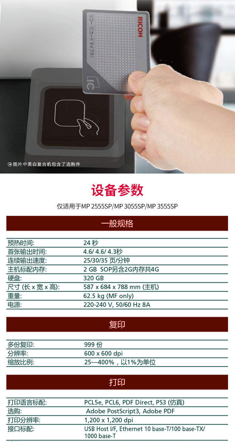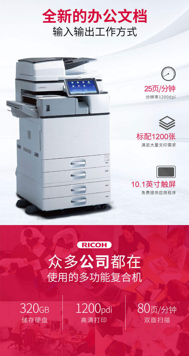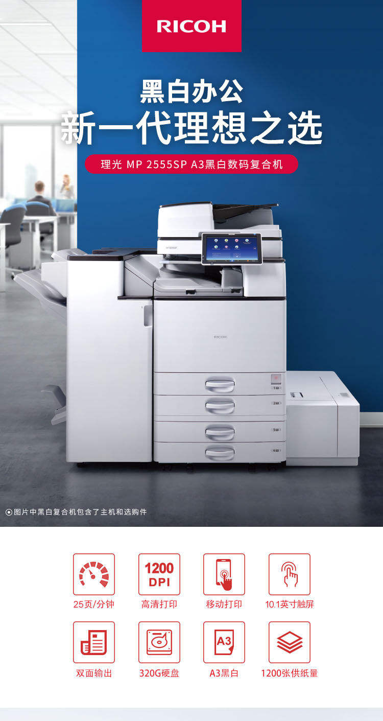 理光RicohMP2555SPA3黑白数码复合机标配输稿器免费上门安装免费上门售后