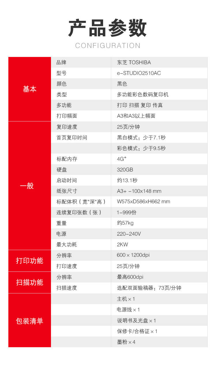 东芝TOSHIBAFC2510AC多功能彩色数码复合机A3激光双面打印复印扫描eSTUDIO2510AC自动输稿器四纸盒
