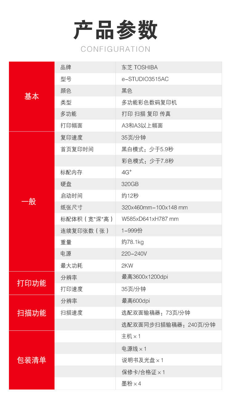 东芝TOSHIBAFC3515AC多功能彩色数码复合机A3激光双面打印复印扫描eSTUDIO3515AC同步输稿器三纸盒