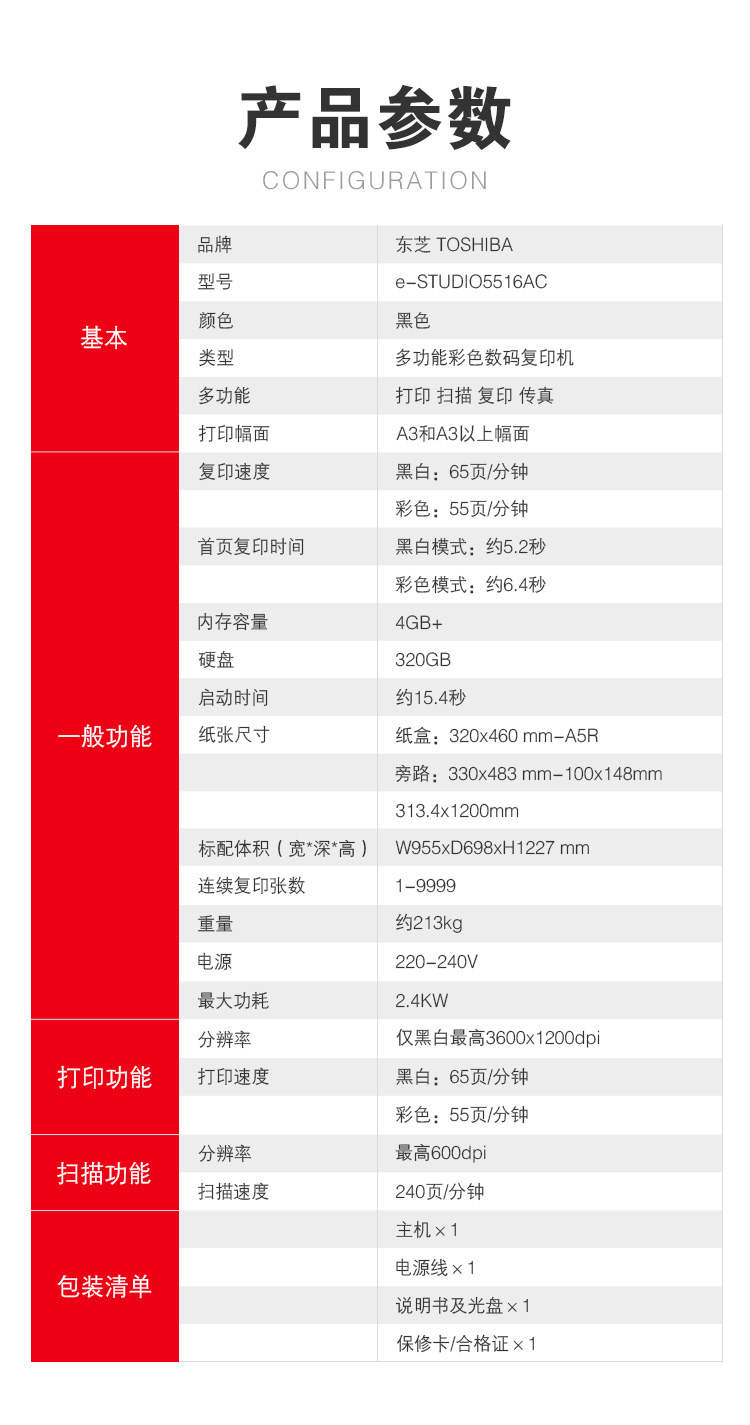 东芝TOSHIBAFC5516AC多功能彩色数码复合机A3激光双面打印复印扫描eSTUDIO5516AC同步输稿器装订器